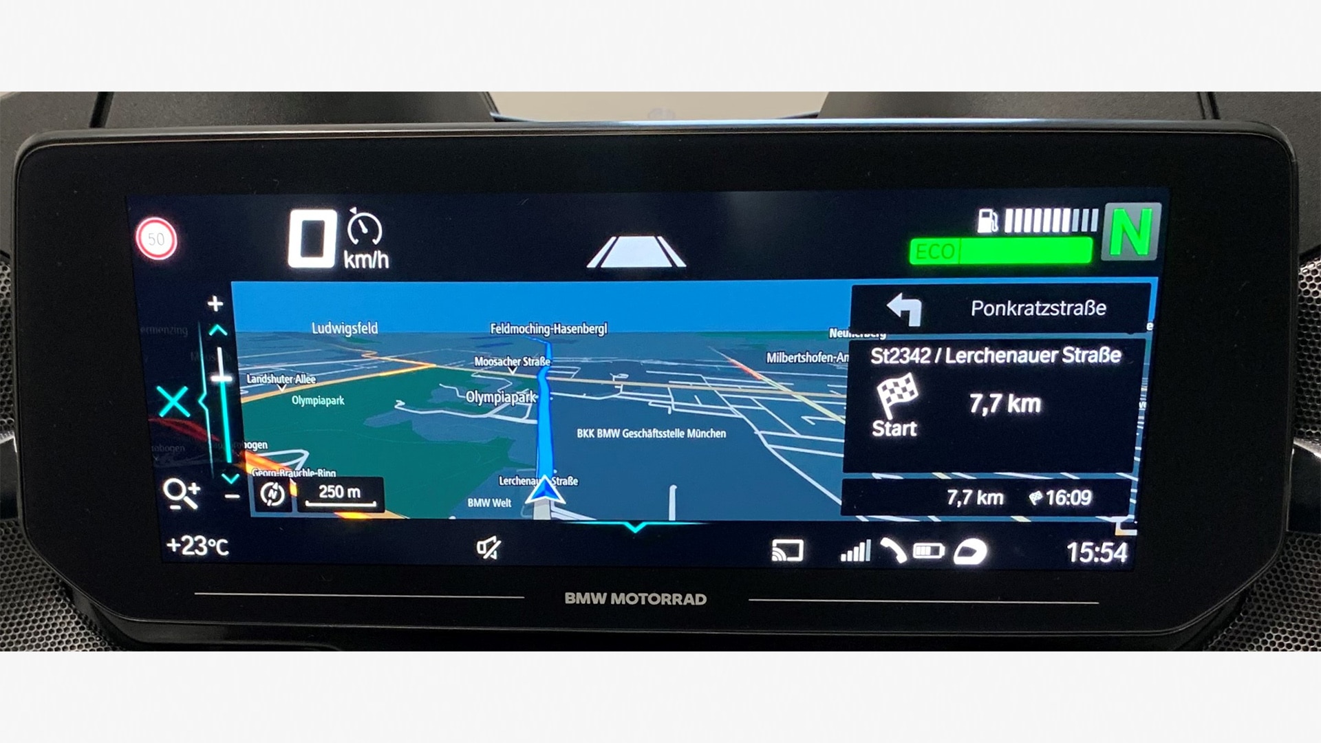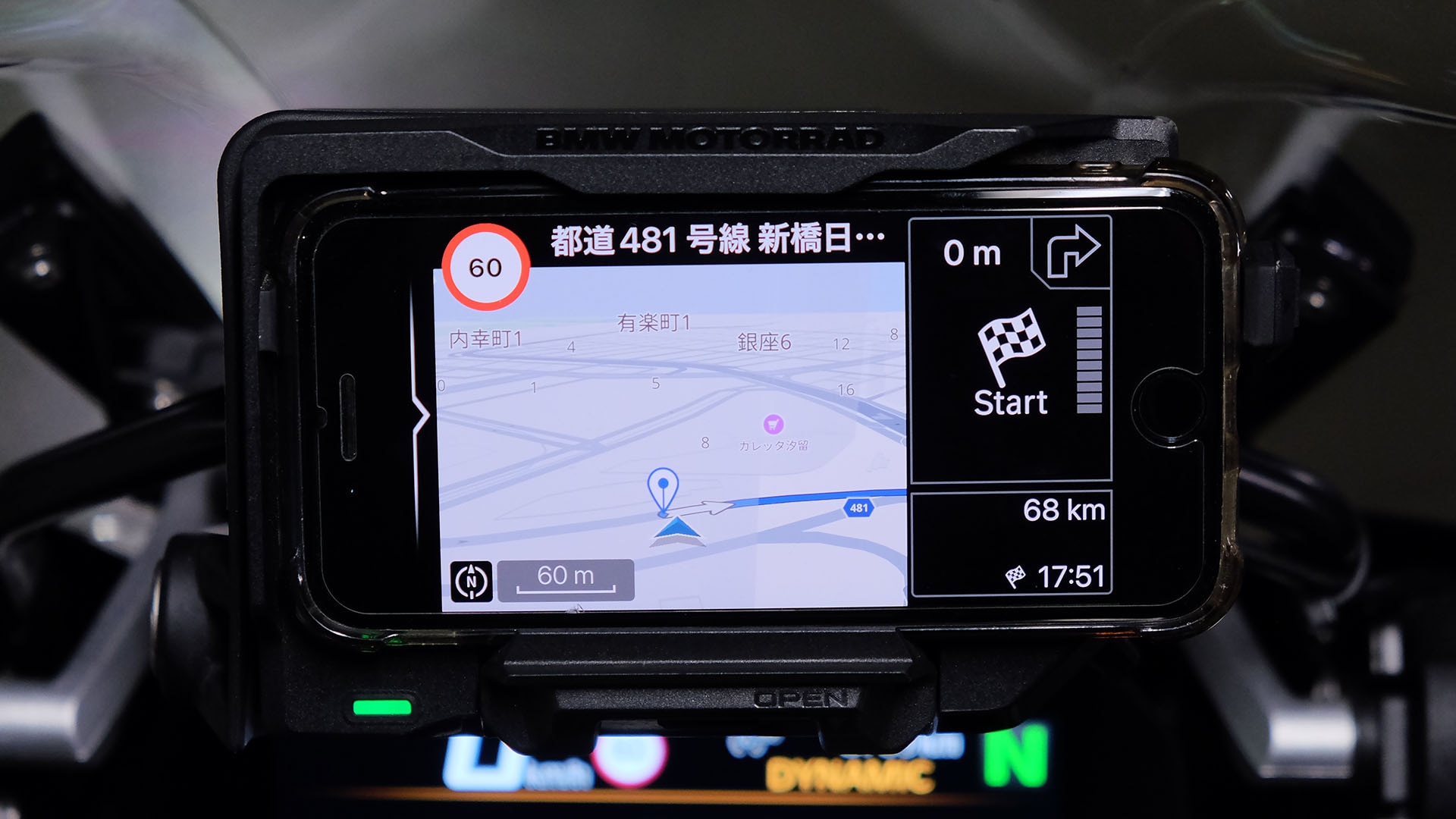 ConnectedRide クレードルは、BMW Motorrad 純正のスマートフォンホルダーです。BMW Motorrad Connected アプリと接続することでナビゲーションマップと、傾斜角、加速度、減速度などの車両データを、ハンドルバーのマルチ コントローラーを使用して操作することが可能となります。